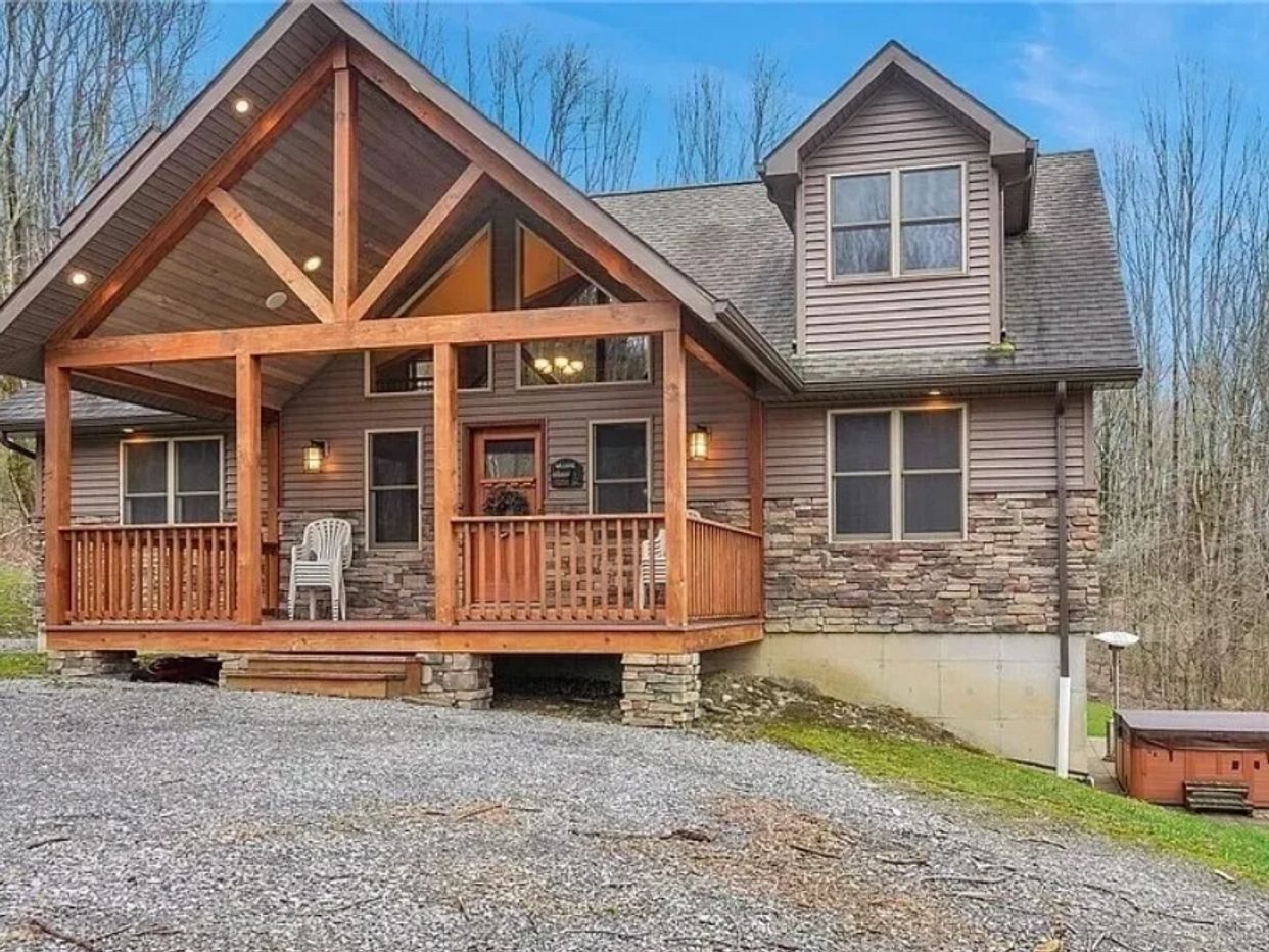 Welcome to The Unique Large Chalet, a stunning 2,938 sq. ft. retreat nestled on a peaceful 2-acre wooded lot just 2 miles from Ellicottville Village. Perfect for families and large groups, this unique getaway accommodates up to 24 guests and features themed bedrooms, a relaxing hot tub, cozy fire pits, a fully equipped chef’s kitchen, and a game room filled with entertainment. Enjoy high-speed fiber internet, multiple Roku TVs with 300+ movies, and plenty of indoor and outdoor space to unwind while surrounded by nature’s beauty for an unforgettable stay.